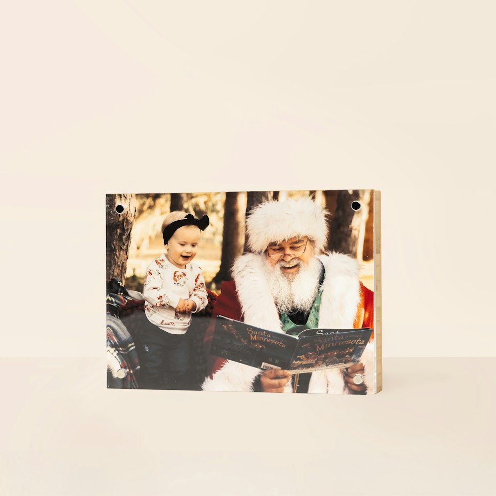 Display 5×7" prints or Mini Snapshots in a sleek bamboo block with magnetic clear acrylic for a swappable display.