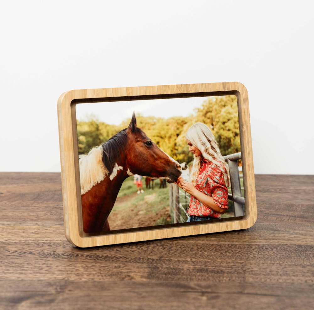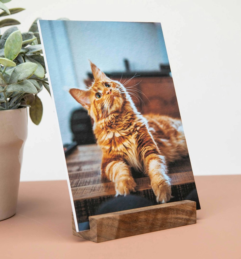 Showcase your favorite images with a solid wood or bamboo print stand.