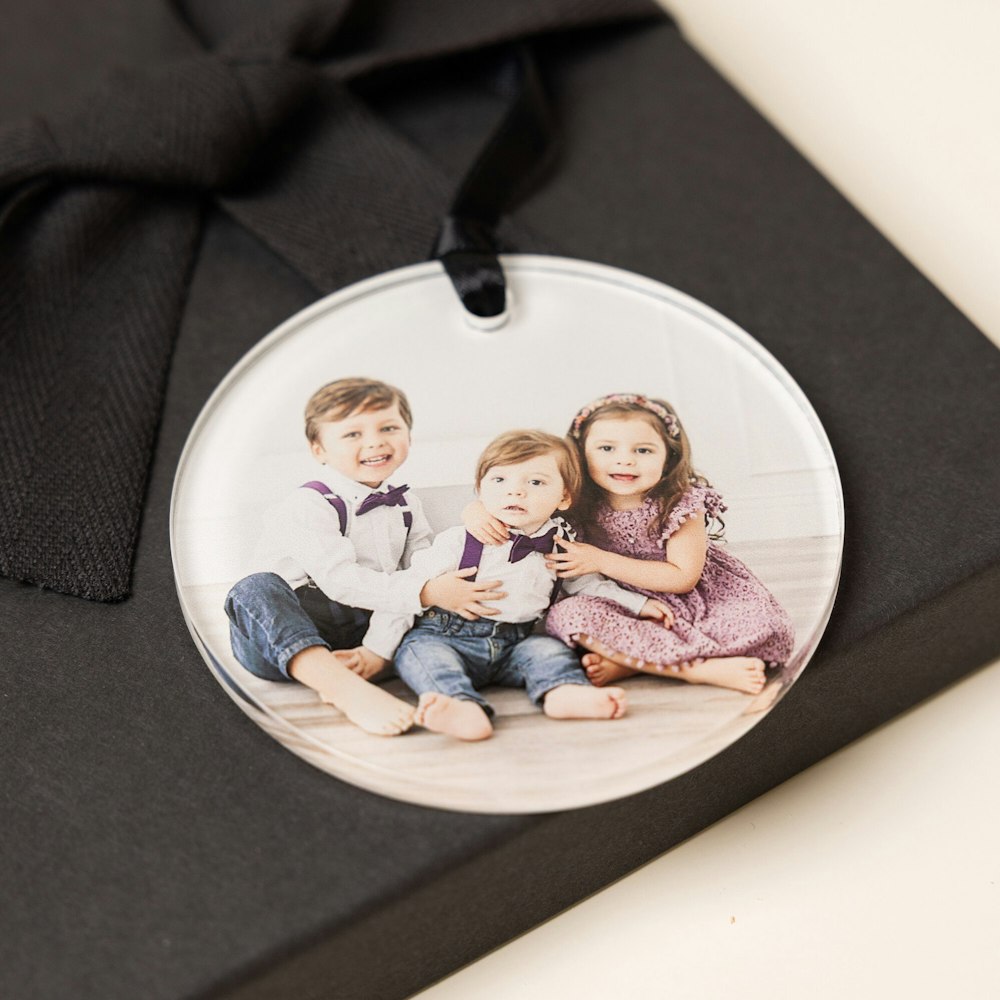 Each ornament is created using the same dye sublimation process as our Metal Prints, infusing your image into the glossy acrylic surface for rich color, brilliant depth, and lasting durability. The result is a smooth, high-gloss finish that catches the light beautifully. Perfect for showcasing your clients’ favorite images on the tree.