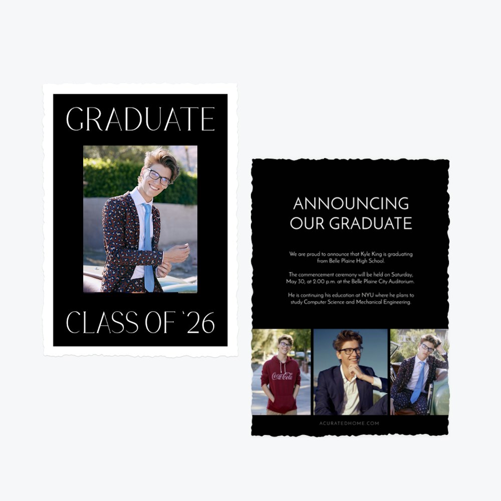 Explore one design and unlock endless possibilities. With our flexible Card Editor, you can customize layouts, colors, fonts, and finishes to create the perfect announcement for every graduate.